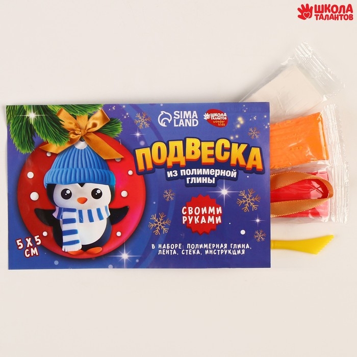 Подвеска из полимерной глины своими руками на новый год «Пингвин в шапочке», новогодний набор для творчества