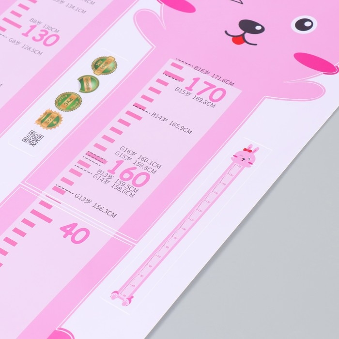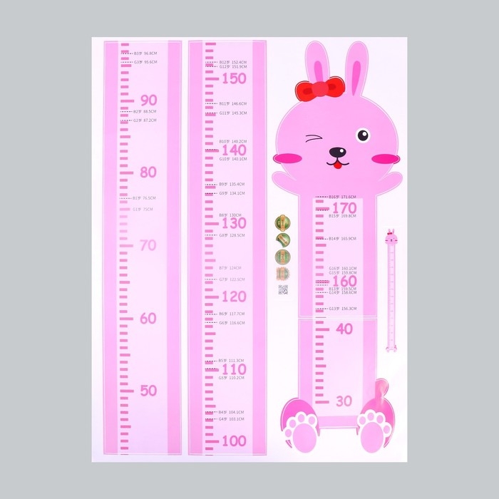 Наклейка пластик интерьерная цветная ростомер "Розовый зайчик" 45x60 см