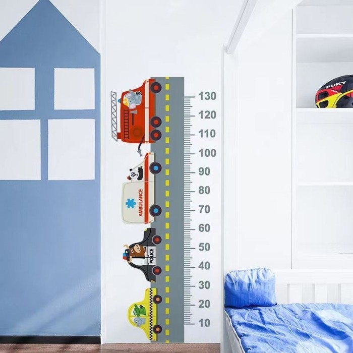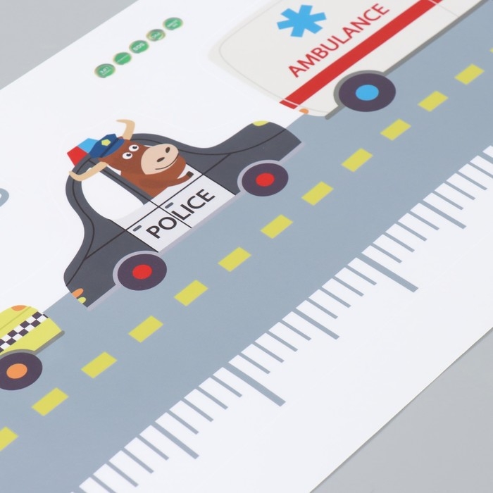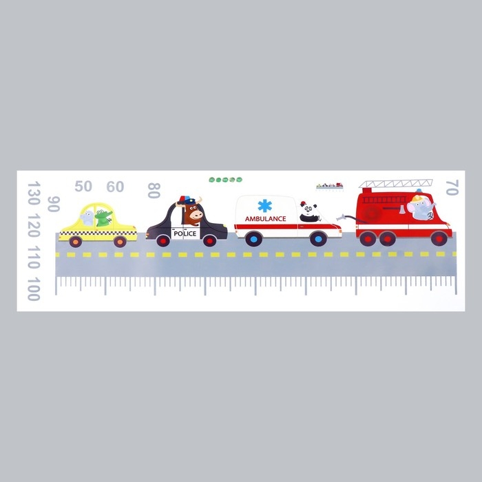 Наклейка пластик интерьерная цветная ростомер "Животные. Спецтранспорт" 30x90 см