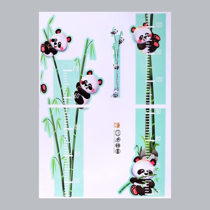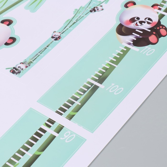 Наклейка пластик интерьерная цветная ростомер "Панды на бамбуке" 50x70 см