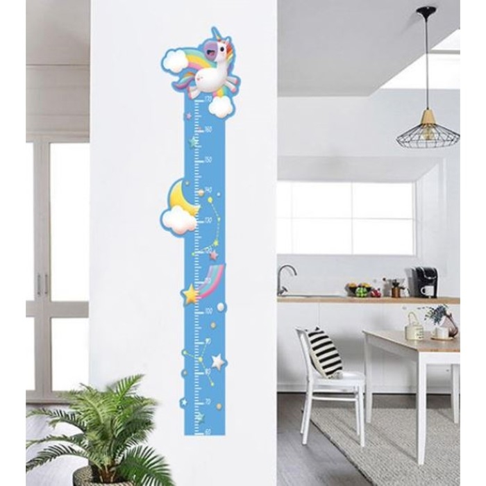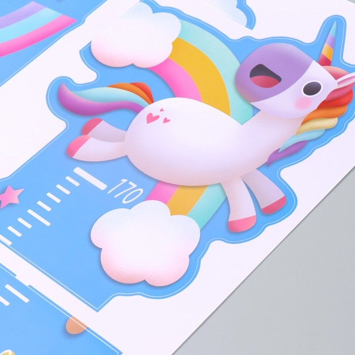 Наклейка пластик интерьерная цветная ростомер "Единорог на радуге" 50x70 см