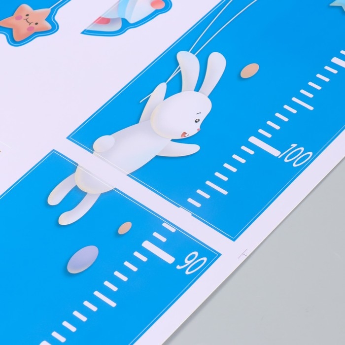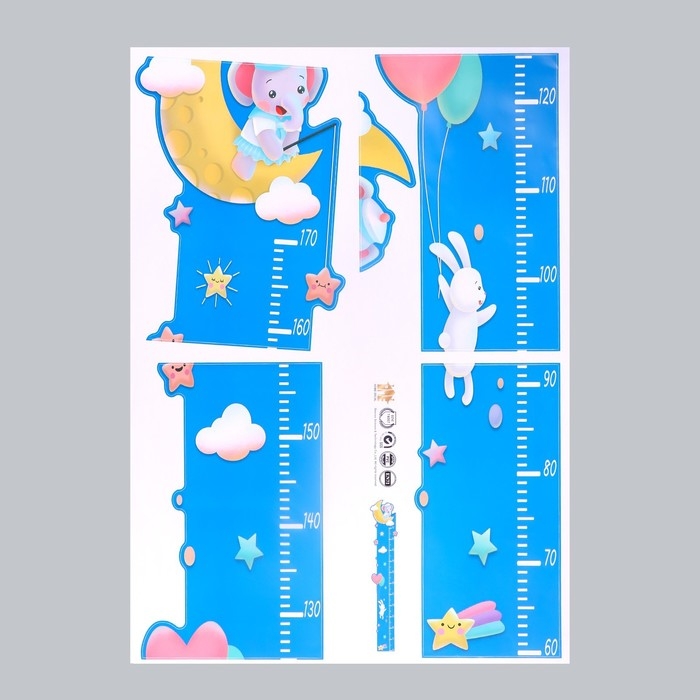 Наклейка пластик интерьерная цветная ростомер "Слоник на месяце" 50x70 см