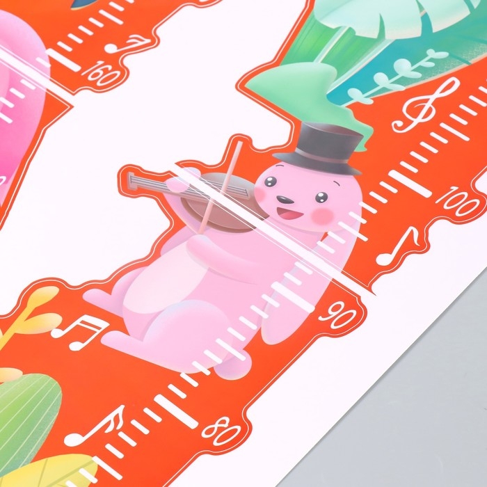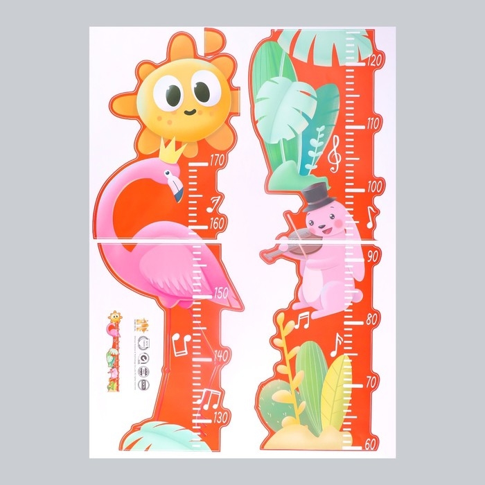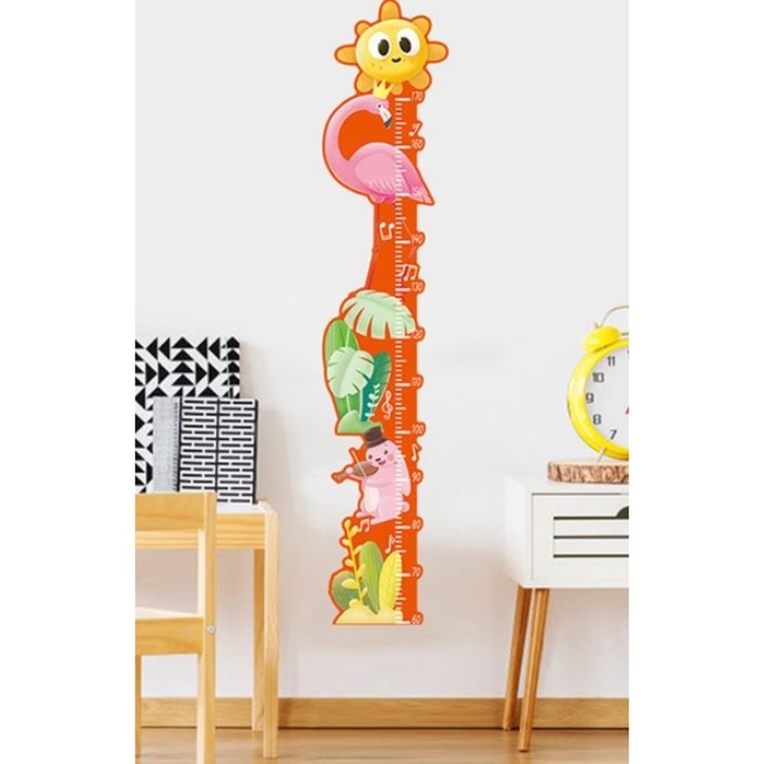 Наклейка пластик интерьерная цветная ростомер "Розовый фламинго и зайчик" 50x70 см
