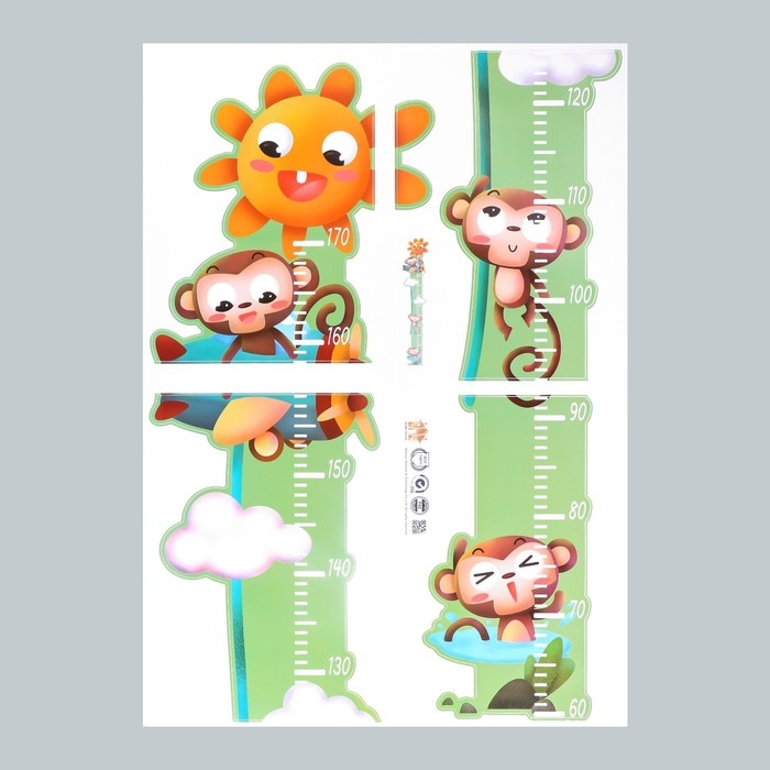Наклейка пластик интерьерная цветная ростомер "Мартышки" 50x70 см