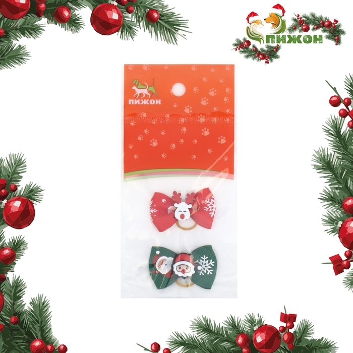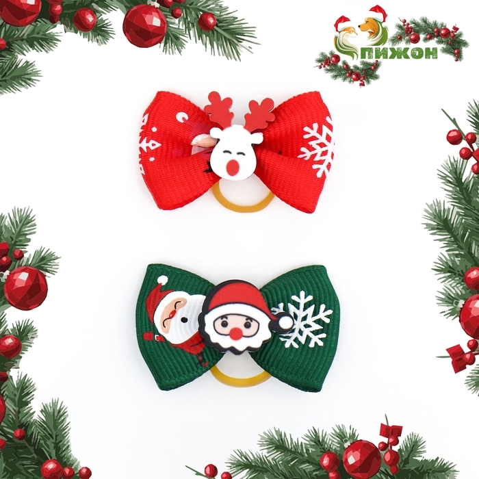Новогодний набор бантиков-резинок "Мороз и Олень" - великолепное украшение для собачки. Множество цветовых гамм позволит подобрать бантик под любой наряд, который есть у вашего любимца. Такое украшение подойдет любой маленькой породе, главное длинношерстной. С помощью бантиков Вы можете легко и просто создать непревзойденный имидж питомца, сделать настоящего модника и просто упростить уход за шерсткой собачки - красиво и правильно уложить челку. Бантики выполнены из репсовых лент с добавлением новогоднего декора. Основа выполнена из качественного, прочного материала, который хорошо тянется. Резинки для собаки украсят Вашего питомца, создадут новогоднее настроение и не оставят никого равнодушным.
