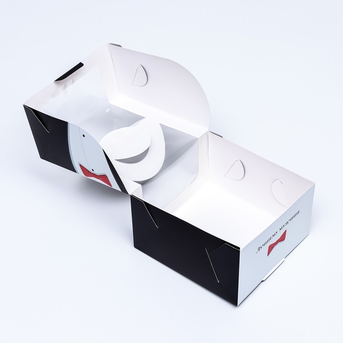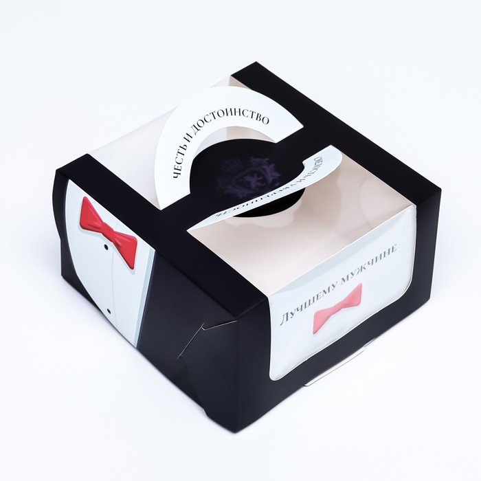 Коробка под бенто-торт с окном "Честь и достоинство", 14 х 14 х 8 см