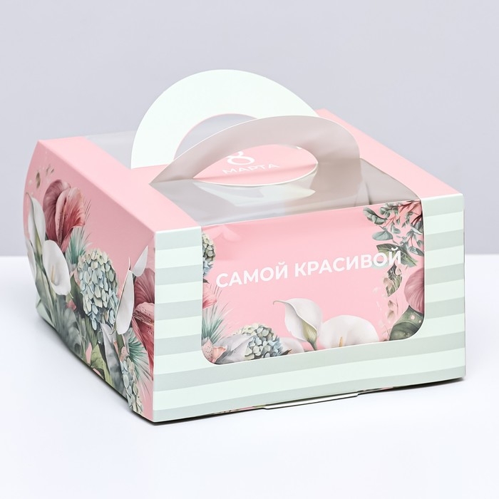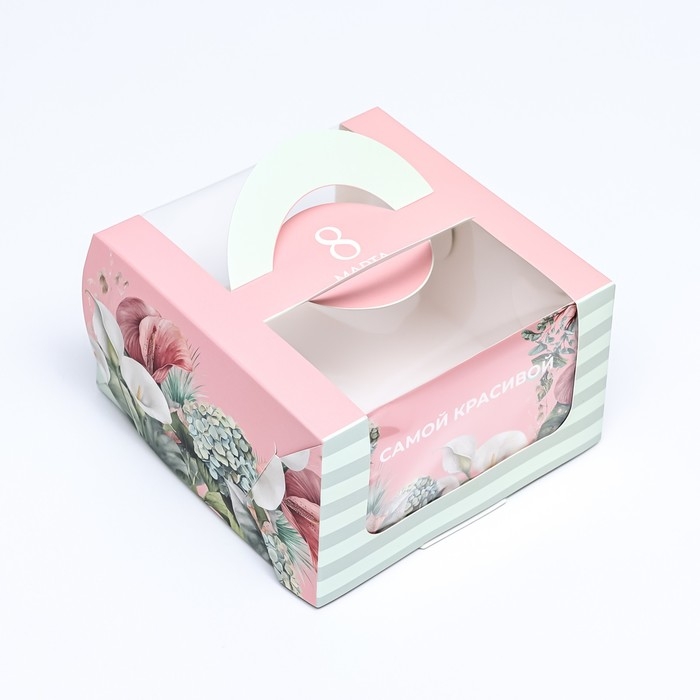 Коробка под бенто-торт с окном "Самой красивой", 14 х 14 х 8 см