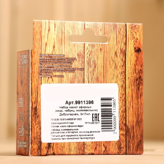 Набор эфирных масел 3 шт "Кедр, Чабрец, Можжевельник" 17 мл