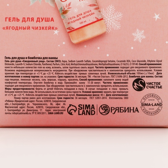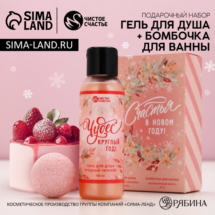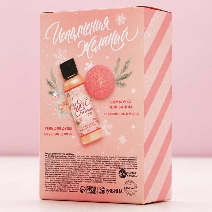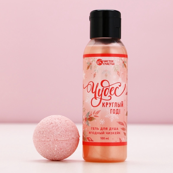 Подарочный набор косметики «Счастья в Новом Году!», гель для душа 100 мл и бомбочка для ванны 40 г, ЧИСТОЕ СЧАСТЬЕ