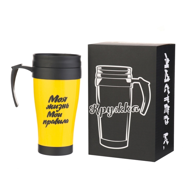 Термокружка с ручкой, 400 мл, Комфорт "Моя жизнь - мои правила", 12.5 х 17 см