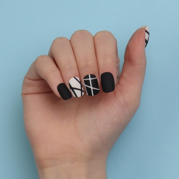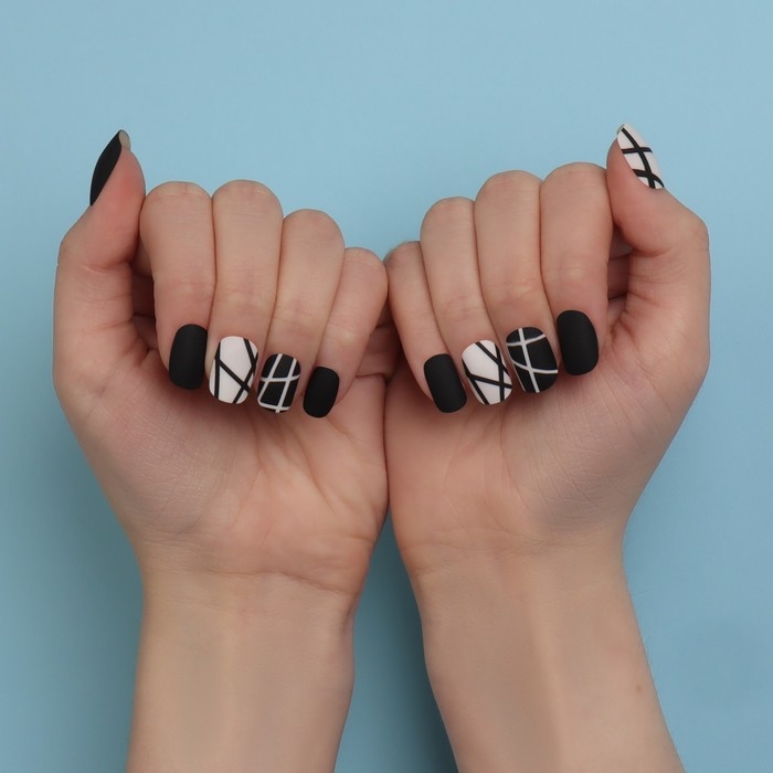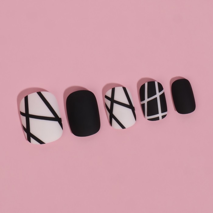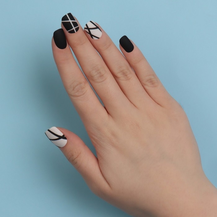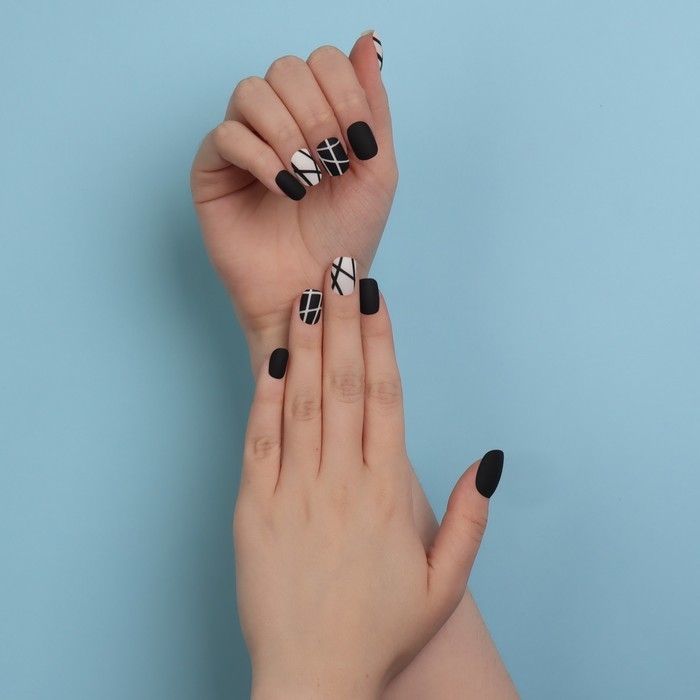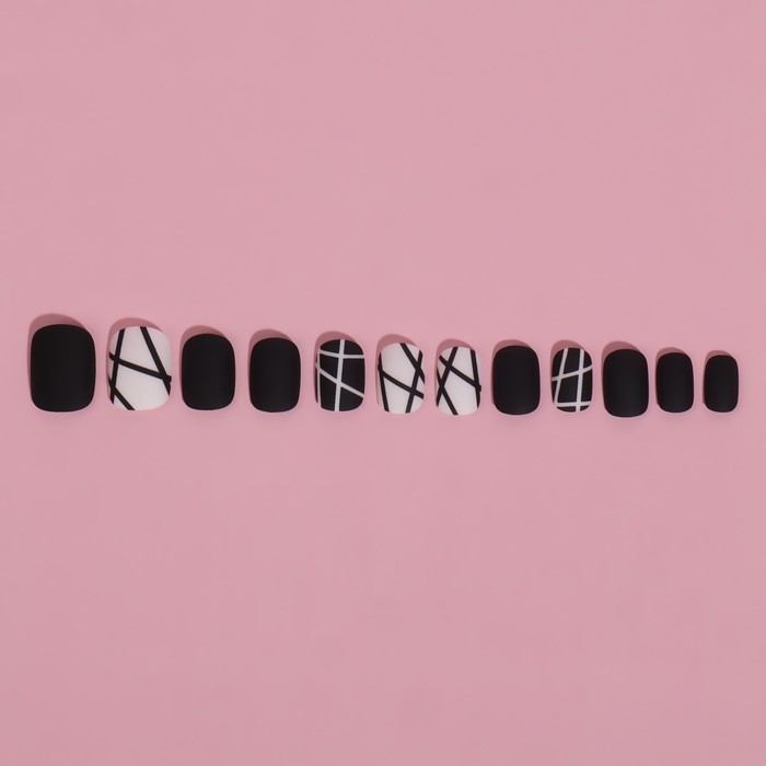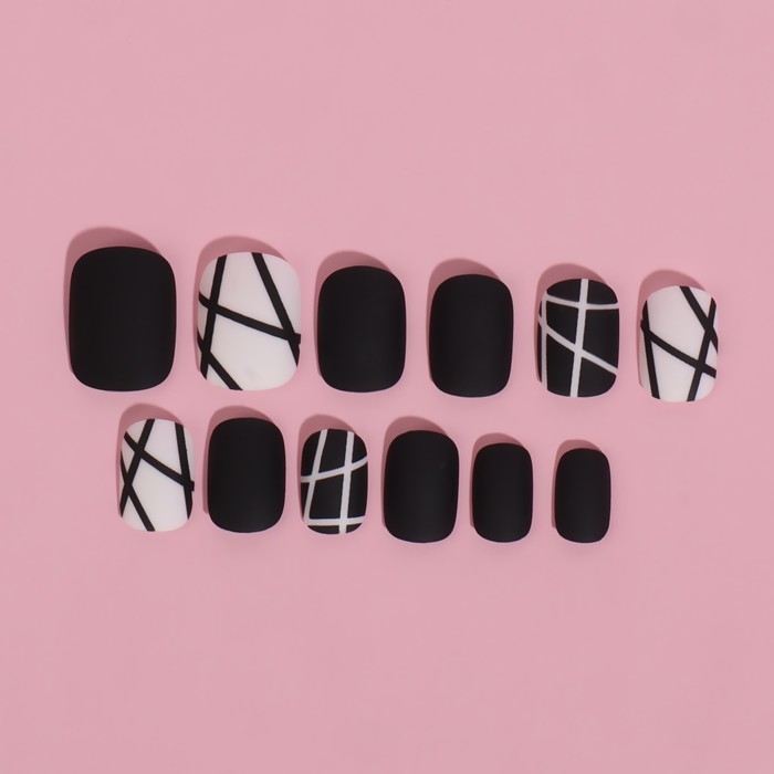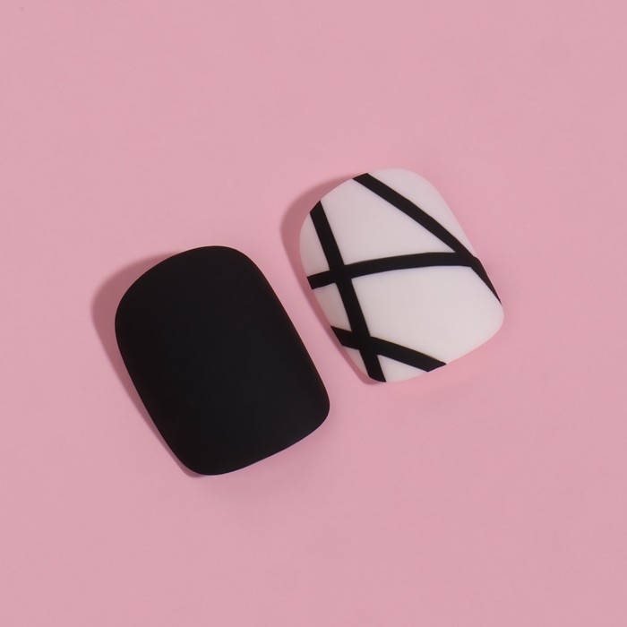 Накладные ногти «Black», 12 шт, с клеевыми пластинами, форма мягкий квадрат, цвет чёрный/белый