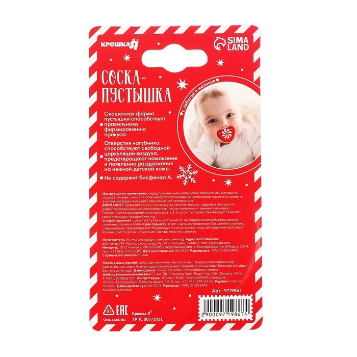 Соска - пустышка «Карамелька», ортодонтическая, силикон, +6 мес., новогодняя подарочная упаковка, Крошка Я