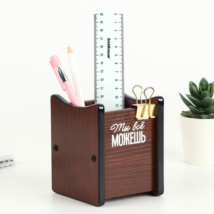 Настольный органайзер для хранения канцелярии – универсальное изделие, которое поможет без лишних хлопот организовать пространство на рабочем столе. Отлично впишется в интерьер и позволит сделать вашу работу максимально продуктивной, ведь удобное рабочее место – залог успешной деятельности. А еще подобный органайзер станет отличным подарком для людей, которые ценят практичные презенты и любят порядок во всем.