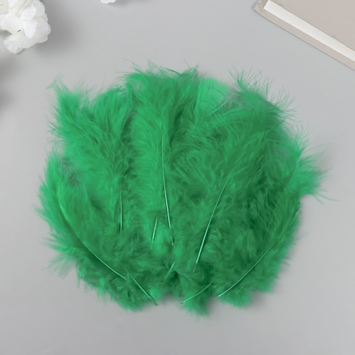 Перо декоративное гусиное пуховое "Зелёная трава" набор 40 шт h=10-15 см