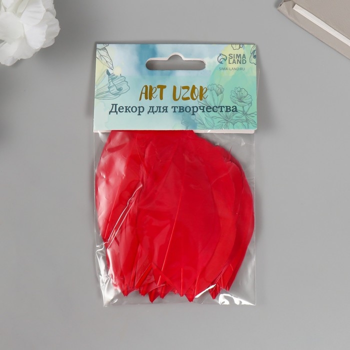 Перо декоративное гусиное "Алое" в форме листа набор 40 шт h=5-7 см