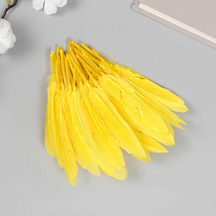Перо декоративное гусиное "Ярко-жёлтое" набор 30 шт h=10-12 см