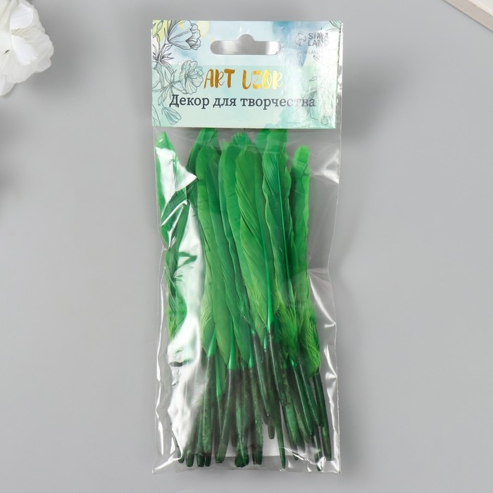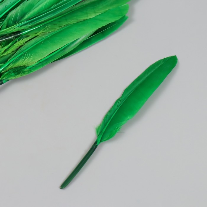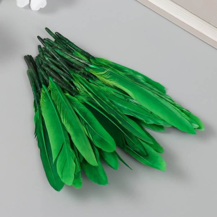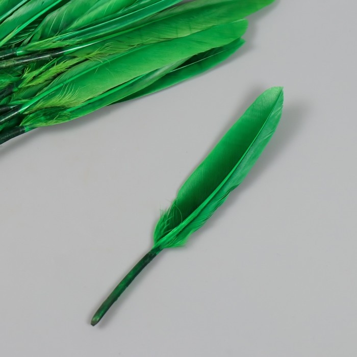 Перо декоративное гусиное "Ярко-зелёное" набор 30 шт h=10-12 см