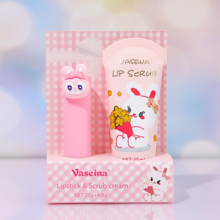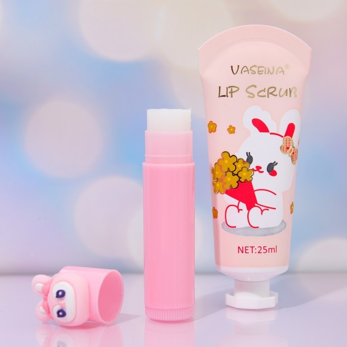Набор клубничный: скраб для губ и вазелин для губ