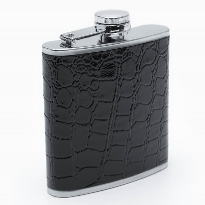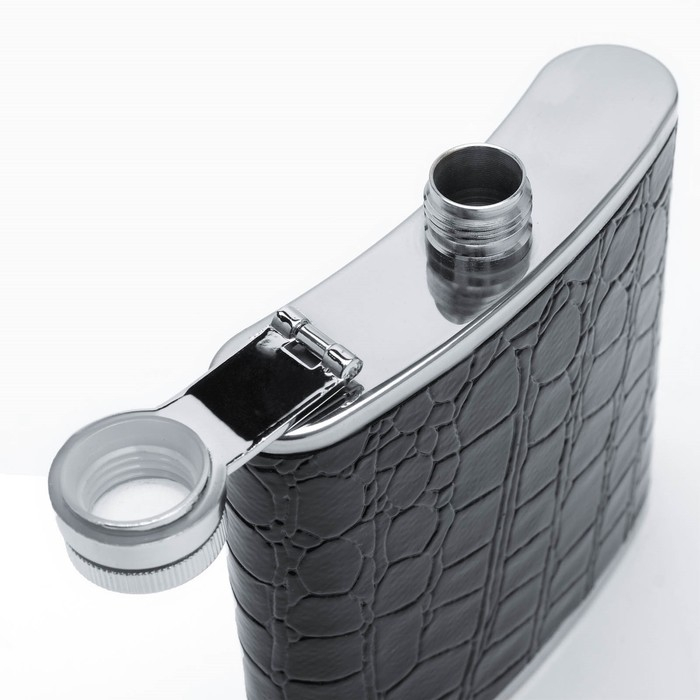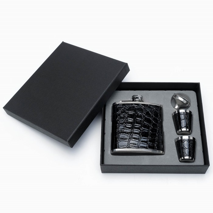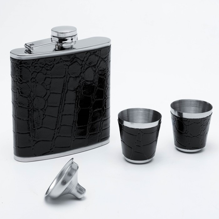 Подарочный набор 4 в 1 "Черный крокодил": фляжка 180 мл, воронка, 2 рюмки, 17 х 18 см