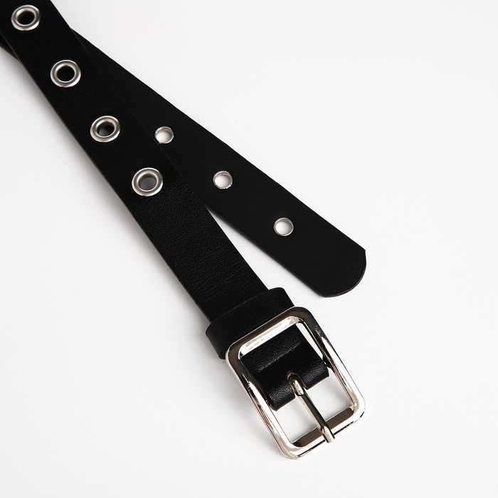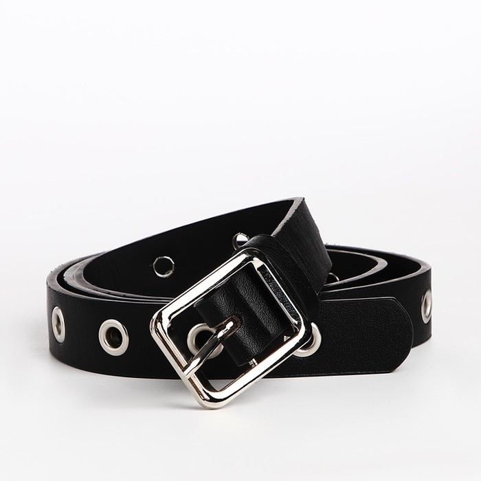 Ремень женский, ширина 2.5 см, люверсы, пряжка металл, цвет чёрный