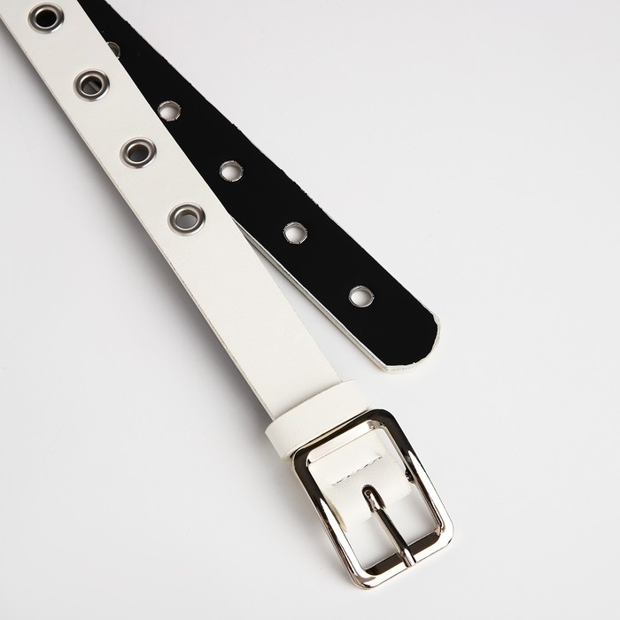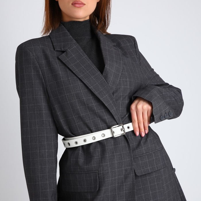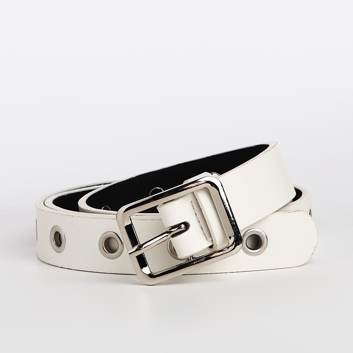 Ремень женский, ширина 2.5 см, люверсы, пряжка металл, цвет белый