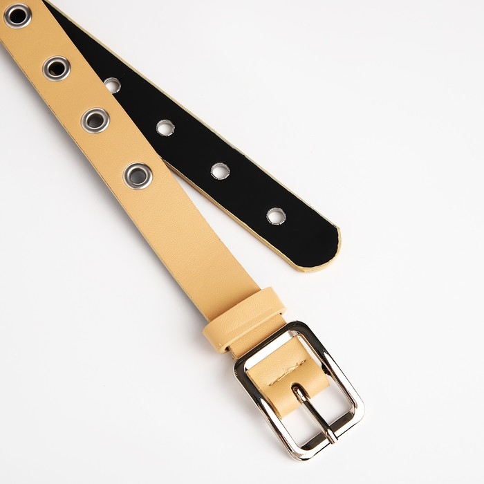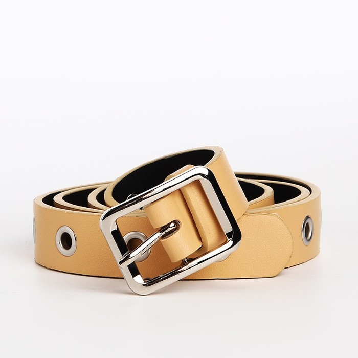 Ремень женский, ширина 2.5 см, люверсы, пряжка металл, цвет бежевый