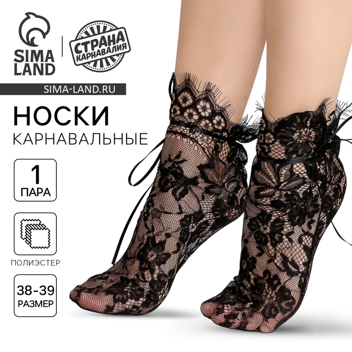 Носки карнавальный аксессуар, цвет черный, кружево