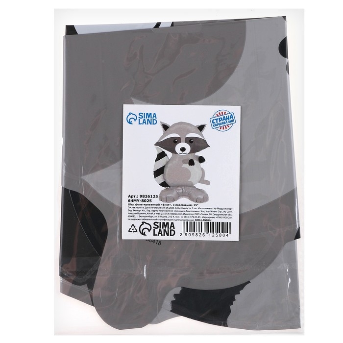 Шар фольгированный 15" «Енот», на подставке, под воздух