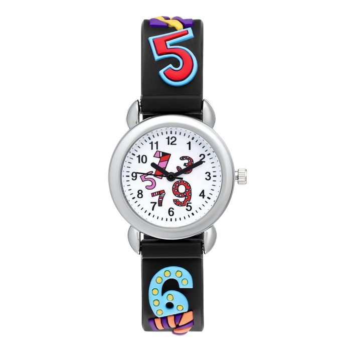 Часы наручные детские, "Цифры", d-2 см, ремешок силикон l-20 см, черные