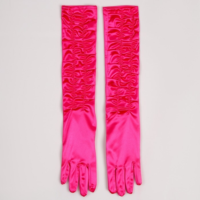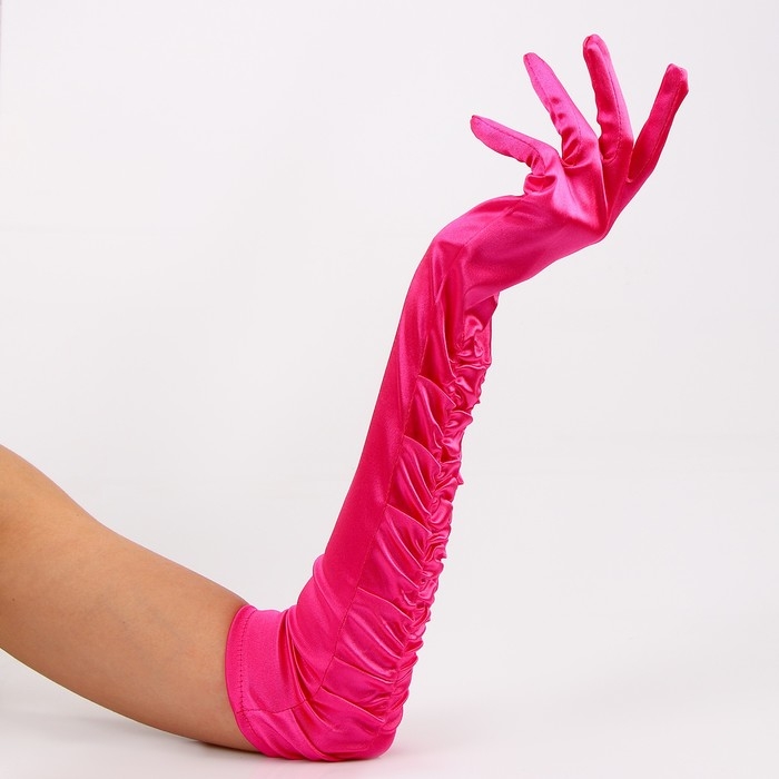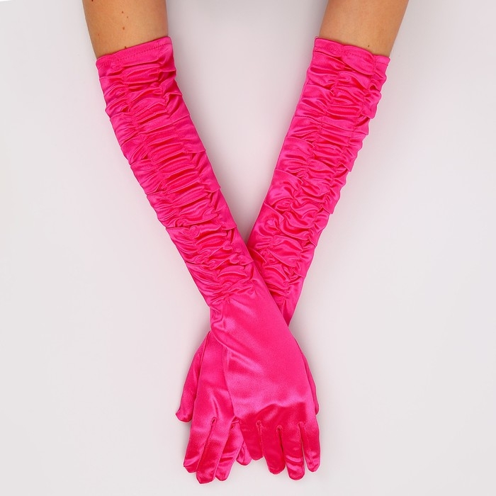 Перчатки женские со сборкой, цвет фуксия, длинные