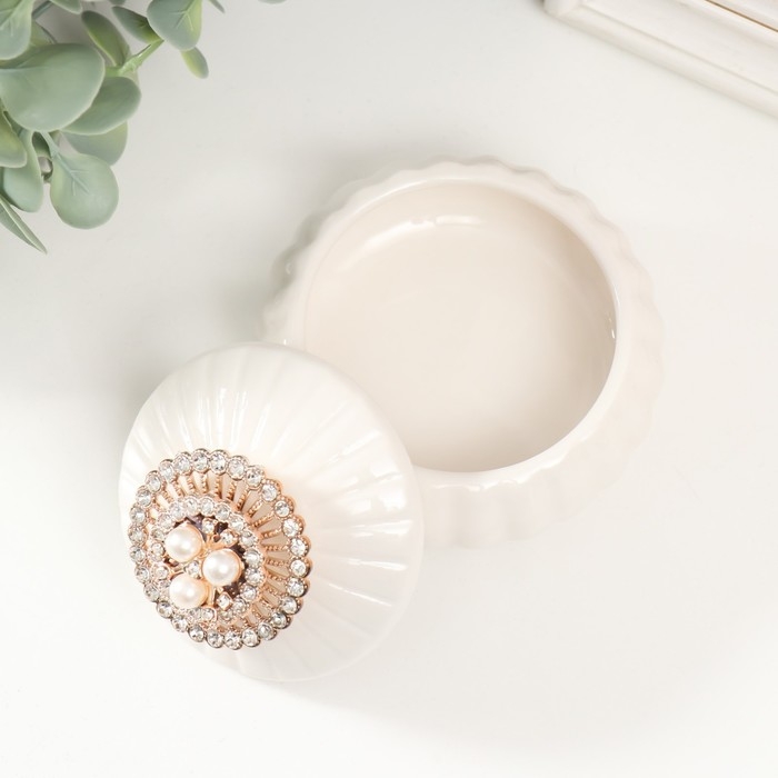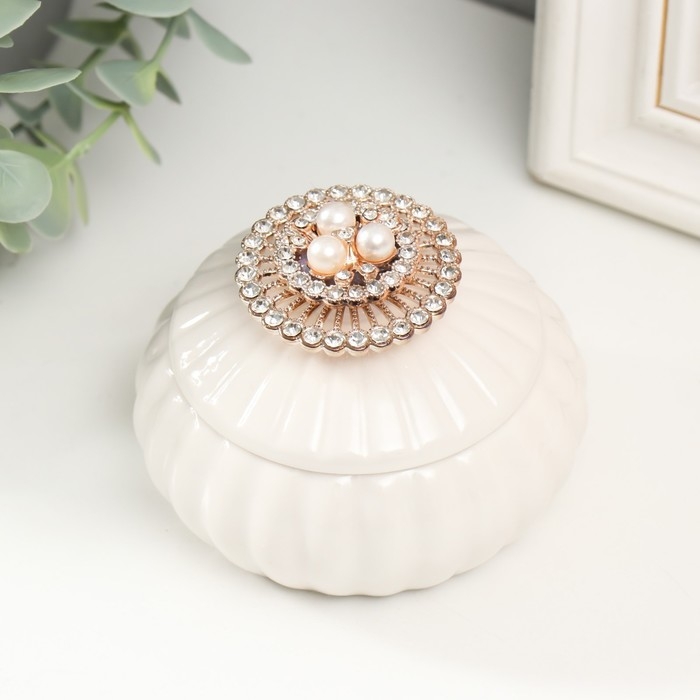 Шкатулка керамика "Круг со стразами и жемчужиной" 7,7х7,7х6 см