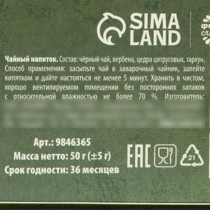Состав: чёрный чай, вербена, цедра цитрусовых, тархун.