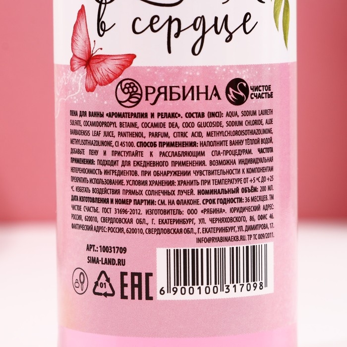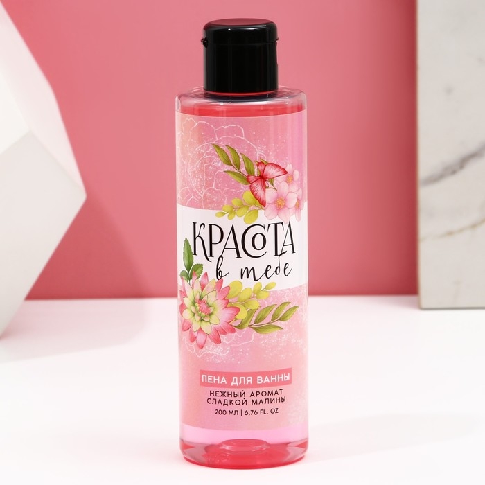 Пена для ванны «Красота в тебе», 200 мл, аромат сладкой малины, ЧИСТОЕ СЧАСТЬЕ