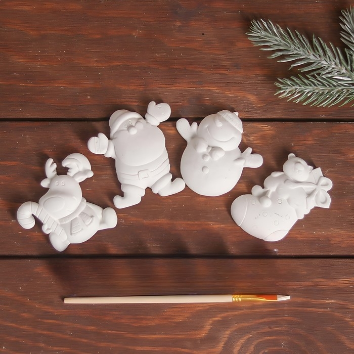 Набор новогодних магнитов под раскраску 4 шт. «Сказочный», кисть