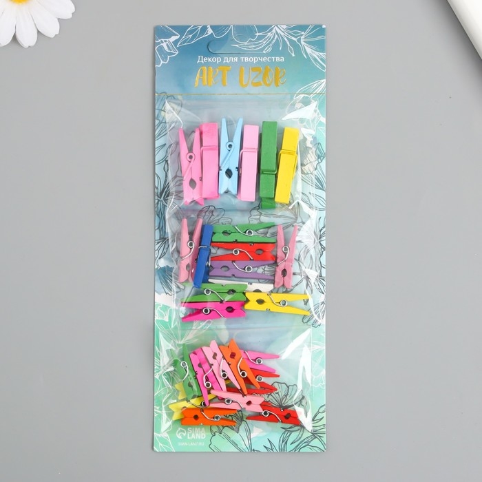 Декор для творчества дерево "Прищепки яркие" набор: 2,5 см-12шт 3 см-10шт 3,5 см-6шт 8х20 см 99131