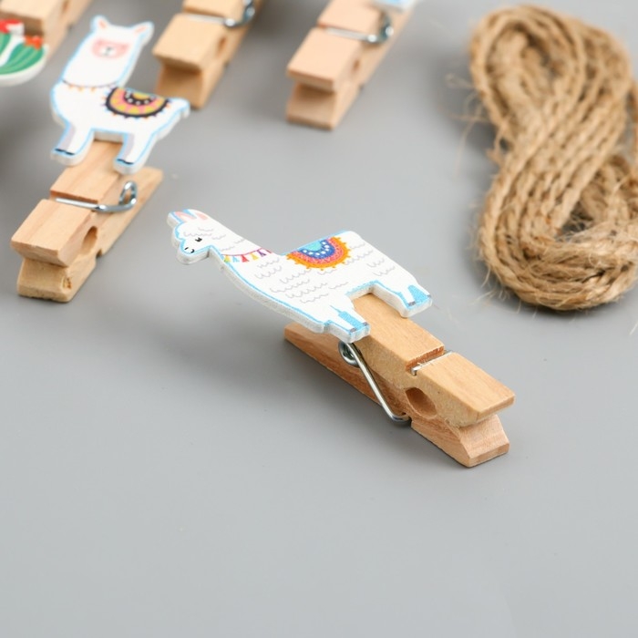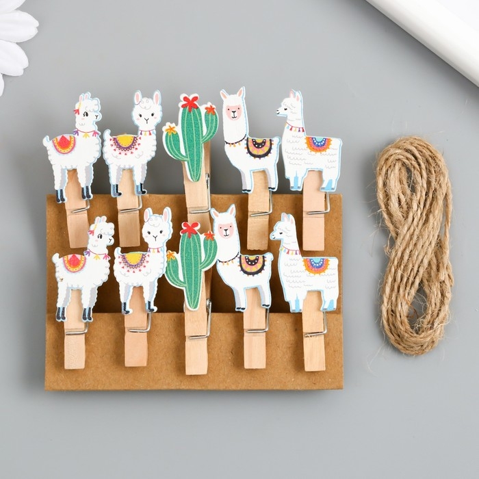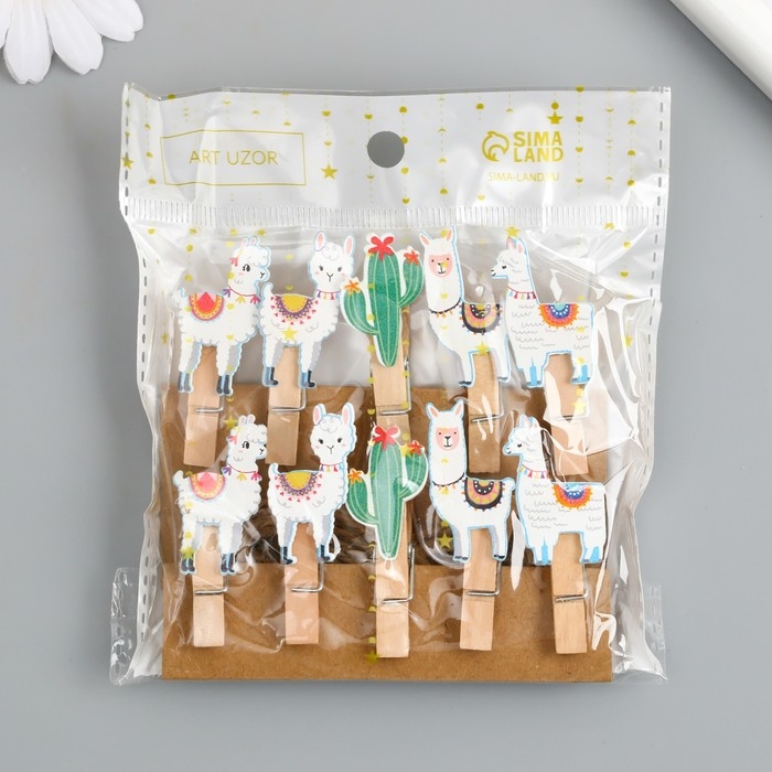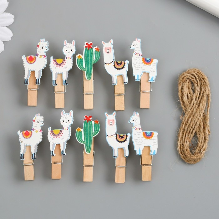 Декор для творчества дерево "Прищепка. Ламы и кактусы" набор 10 шт 5х2х1,2 см