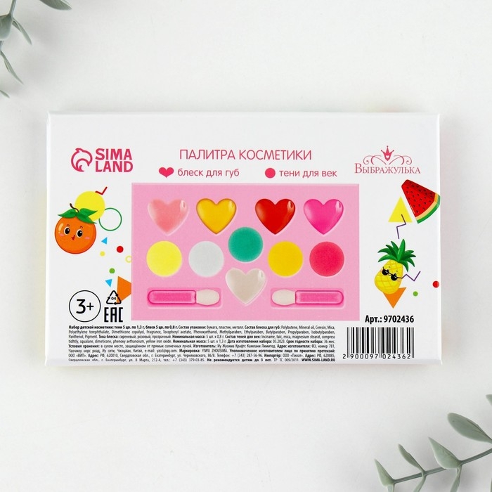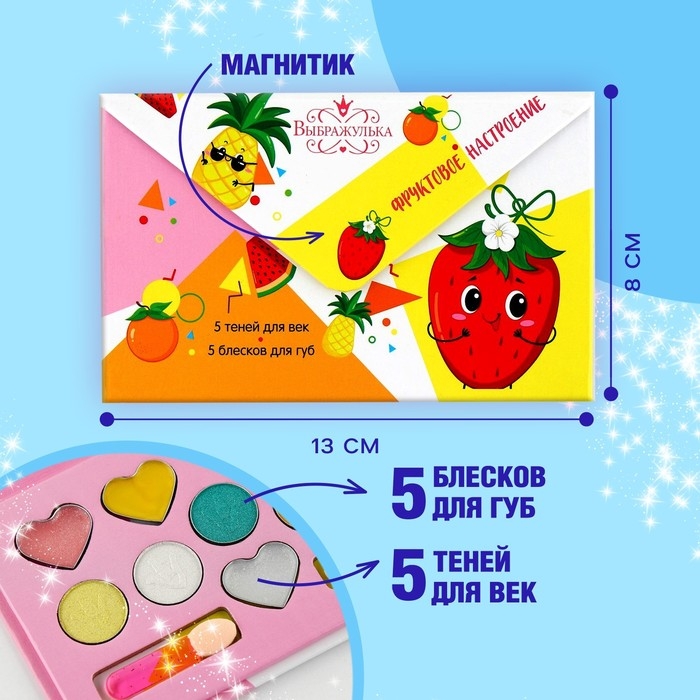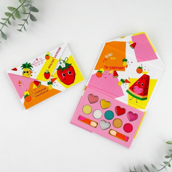 Набор косметики для девочки «Фруктовое настроение»,тени 5 цв по 1,3 гр, блеск 5 цв по 0,8 гр
