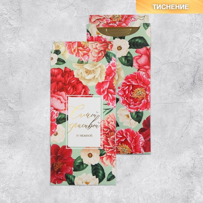 Конверт для денег «Самой прекрасной», цветы, конгрев, тиснение 9.5 х 19.5 см