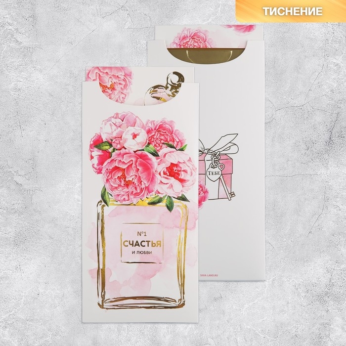 Конверт для денег «Счастье», цветы, конгрев, тиснение 9.5 х 19.5 см