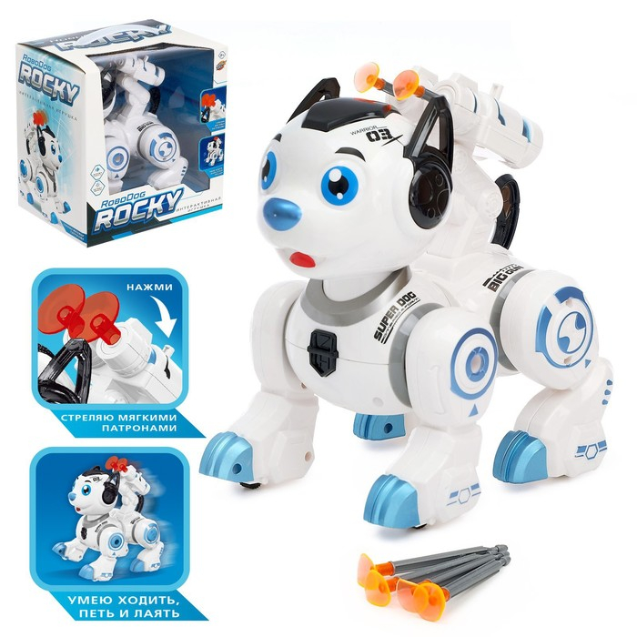 Робот-собака «Рокки» станет настоящим другом для вашего ребёнка. Эта интерактивная игрушка позволит малышу развиваться во время весёлых игр.