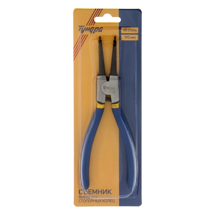 Съемник внешних стопорных колец ТУНДРА, прямые губки на разжим, 170 мм