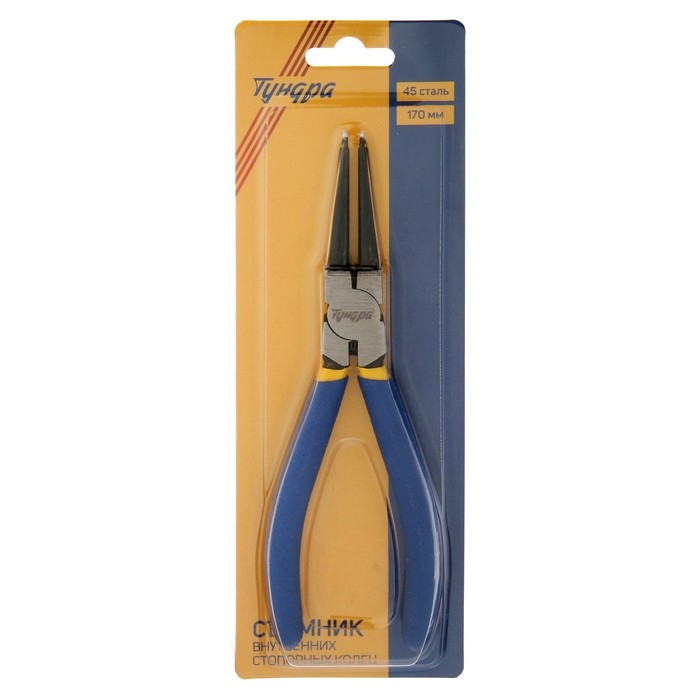Съемник внутренних стопорных колец ТУНДРА, прямые губки на сжим, 170 мм