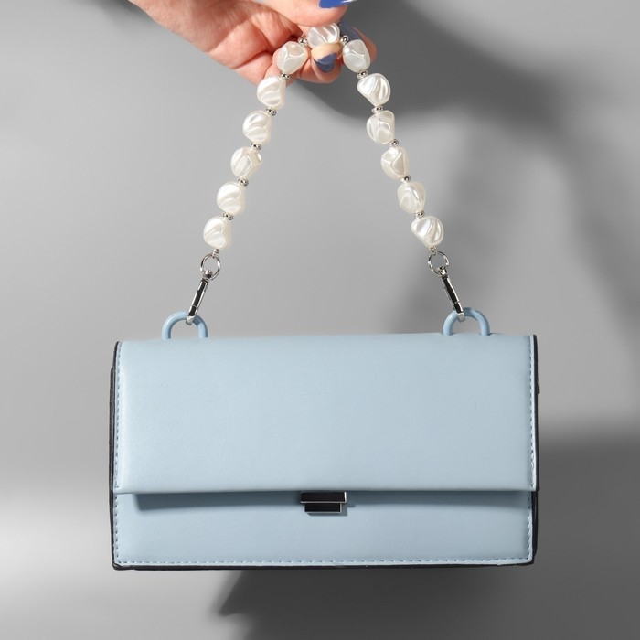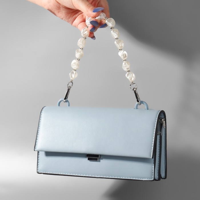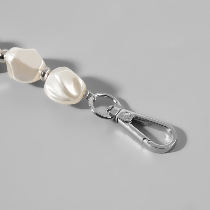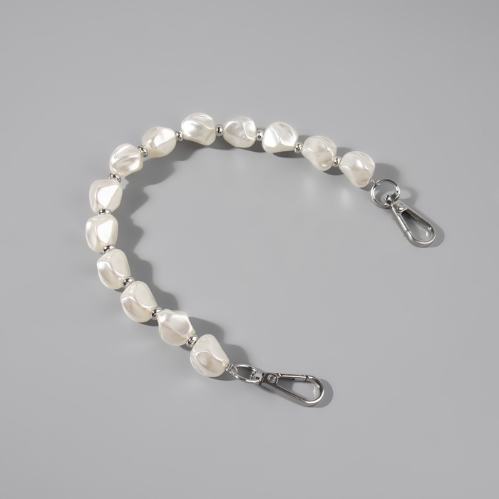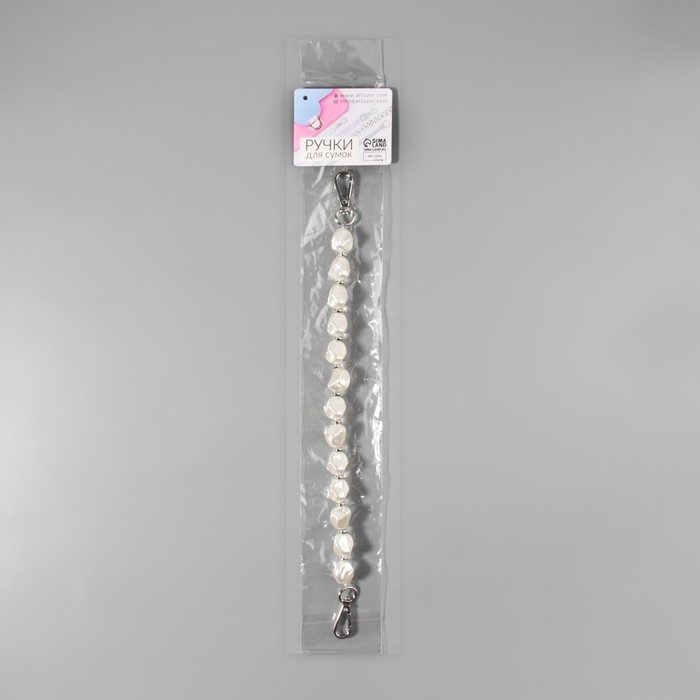 Ручка для сумки, перламутровые бусы, 26 см, цвет белый/серебряный