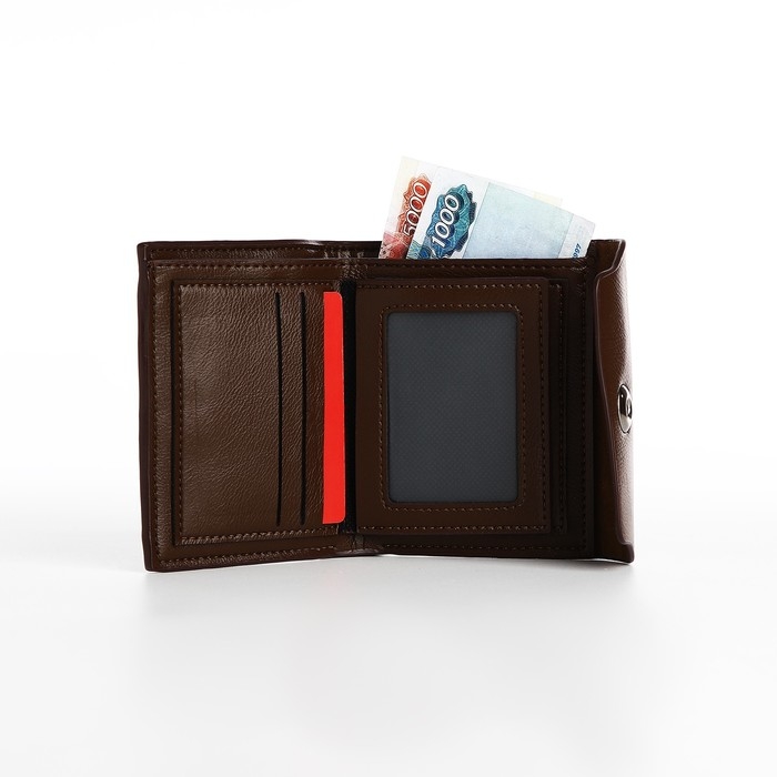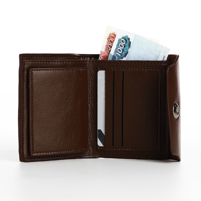 Портмоне мужское на магните, отдел для купюр, для карт, для монет, цвет коричневый