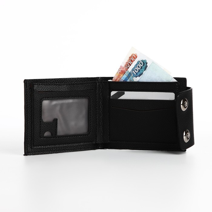 Портмоне мужское на магнитах, отдел для купюр, для карт, для монет, цвет чёрный