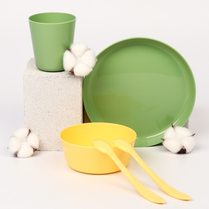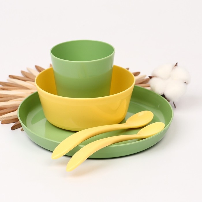 Набор детской посуды Lalababy Follow Me (тарелка, миска, стаканчик, 2 ложки), цвет зеленый
