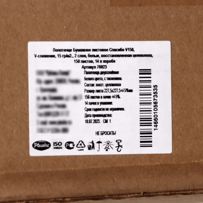 Полотенца бумажные V-сложения Plushe, 15 г.м2, 2 слоя,150 листов