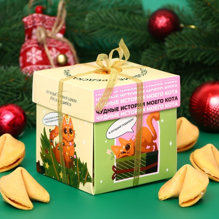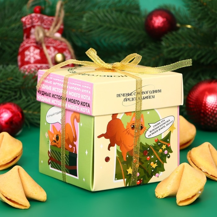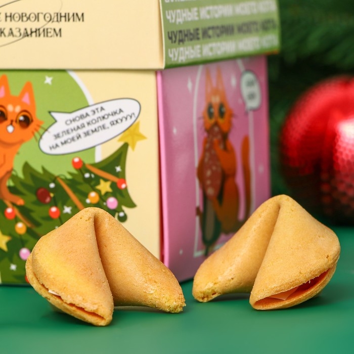 Новый год. Печенье песочное с новогодним предсказанием "Чудные истории моего кота", 35 г, 5 штук