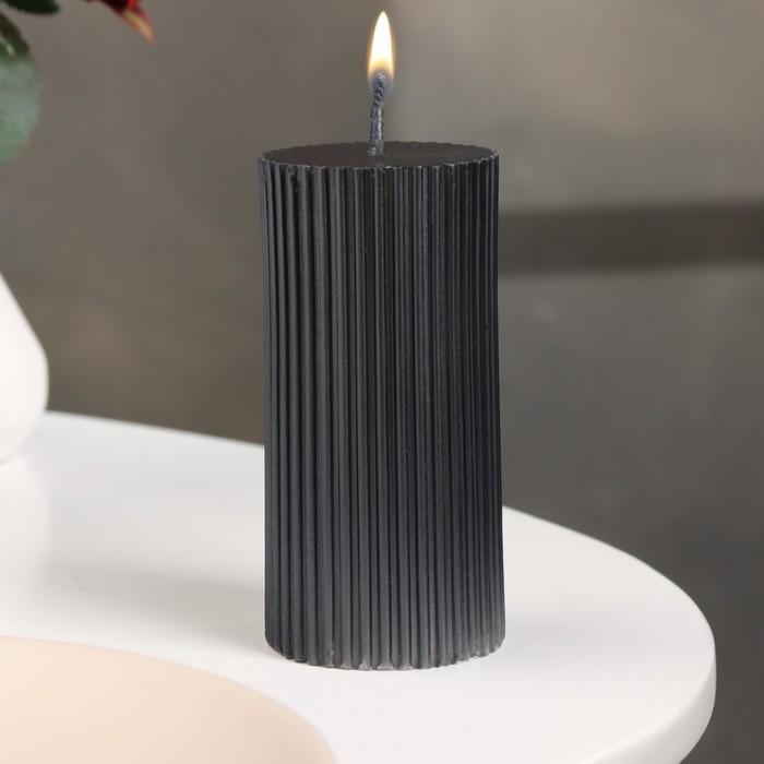Свеча-цилиндр с гранями, 5х10 см, мокрый асфальт, 6 ч