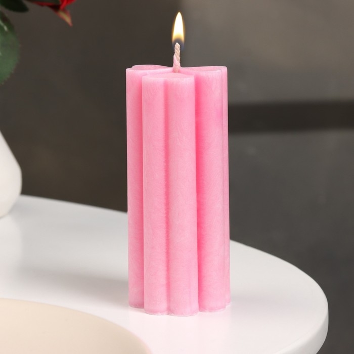 Свеча-цилиндр "Четырехлистник", 4,5х10,5 см, малиновая, 6 ч